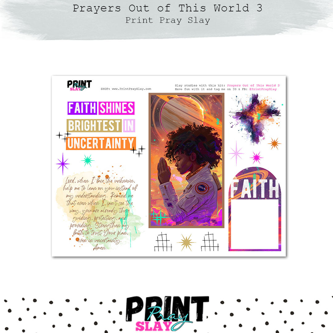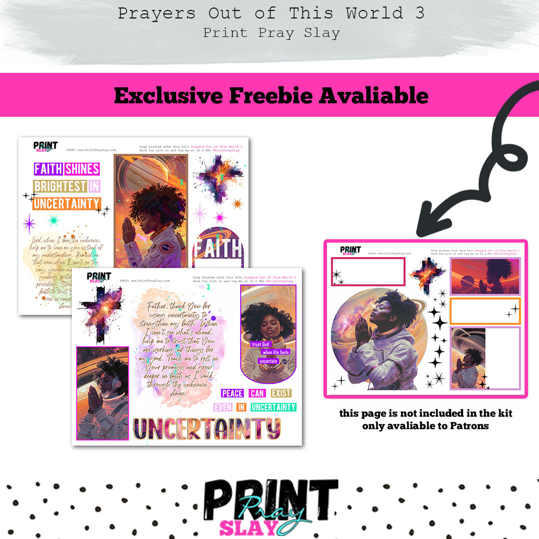 PATRONS TO GET THE FREEBIE - please email your order code for the kit Prayers Out of This World to Kelly@printprayslay.com